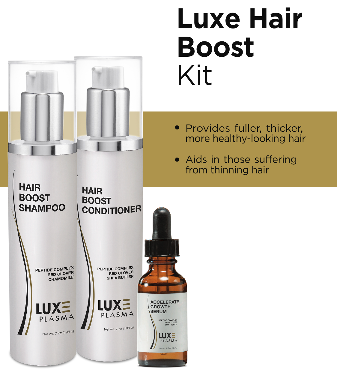 Transform your hair with the LUXE Plasma Hair Boost Kit. Clinically Proven. Natural medical grade ingredients.